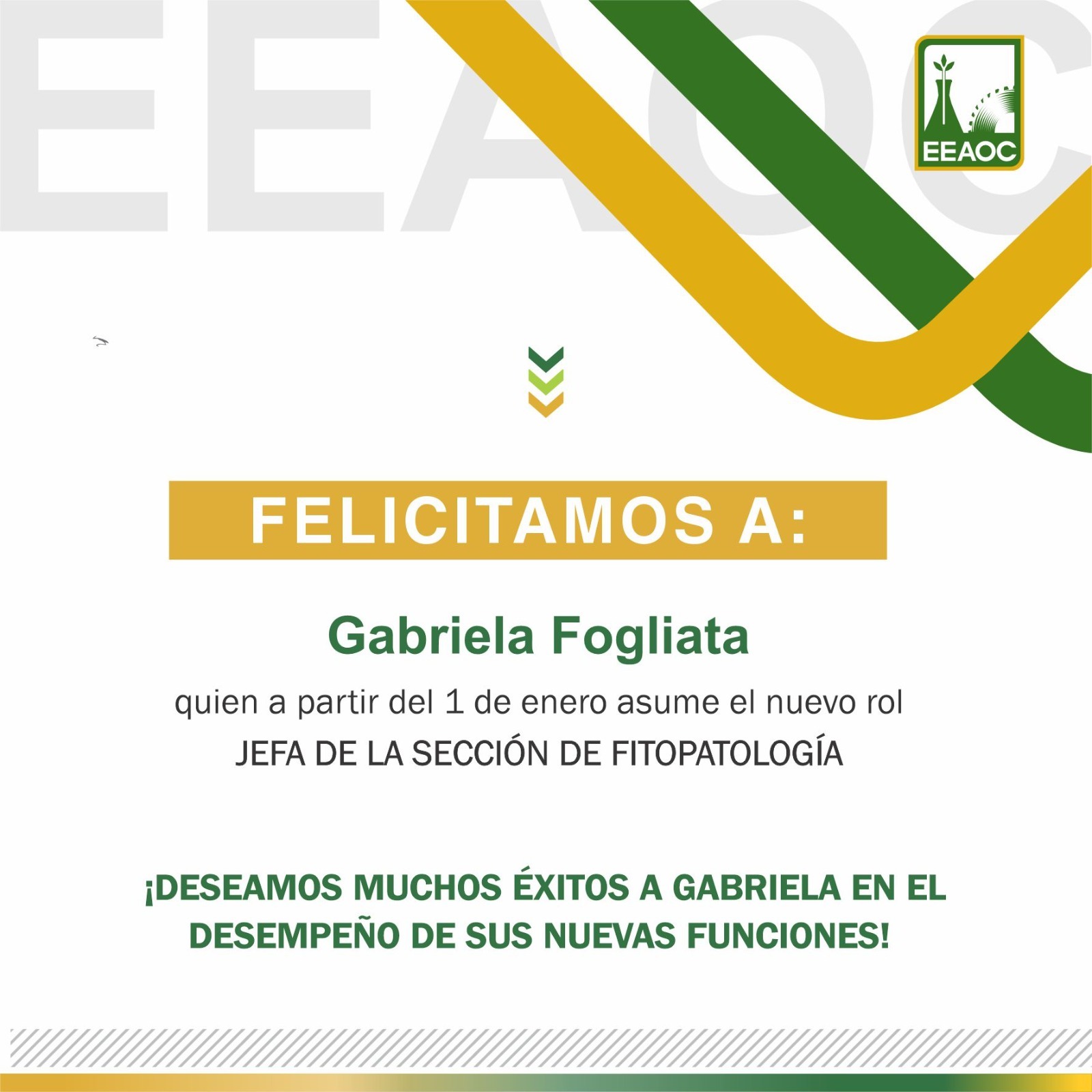 La Sección Comunicaciones felicita a la Ing. Agr. Natalia Catalina Aguaysol, de la Sección Fitopatología de la Estación Experimental Agroindustrial Obispo Colombres, por la exitosa defensa de su Tesis de Maestría en Ciencias Agrarias, con orientación en Producción Sostenible, realizada el miércoles 18 de diciembre, en la Facultad de Agronomía, Zootecnia y Veterinaria de la Universidad Nacional de Tucumán.
