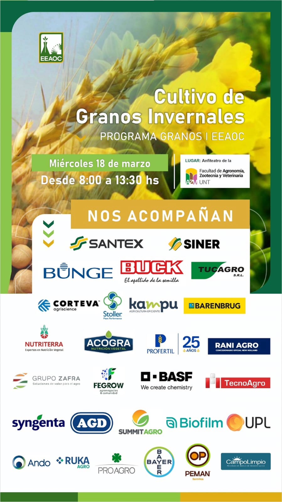 Desde Brucke Agro y la EEAOC los invitamos a inscribirse en la reunión sobre Recomendaciones para las siembras de invierno: trigo y garbanzo, el día miércoles 31/03 a las 09:00 hs