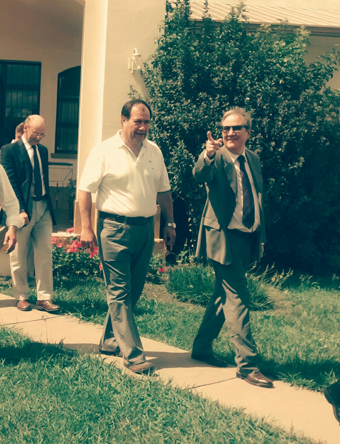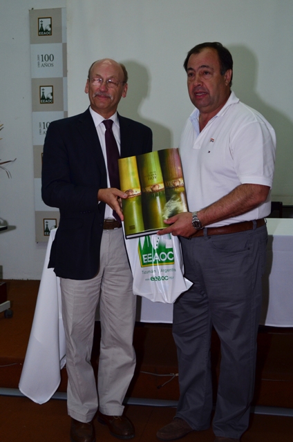 En el edificio central de la EEAOC, la comitiva fue recibida por el Presidente del Honorable Directorio de la EEAOC, Don Juan José Budeguer; el Director Técnico, Doctor Daniel Ploper y el Director Asistente en Tecnología Industrial, Ing. Marcelo Ruiz.