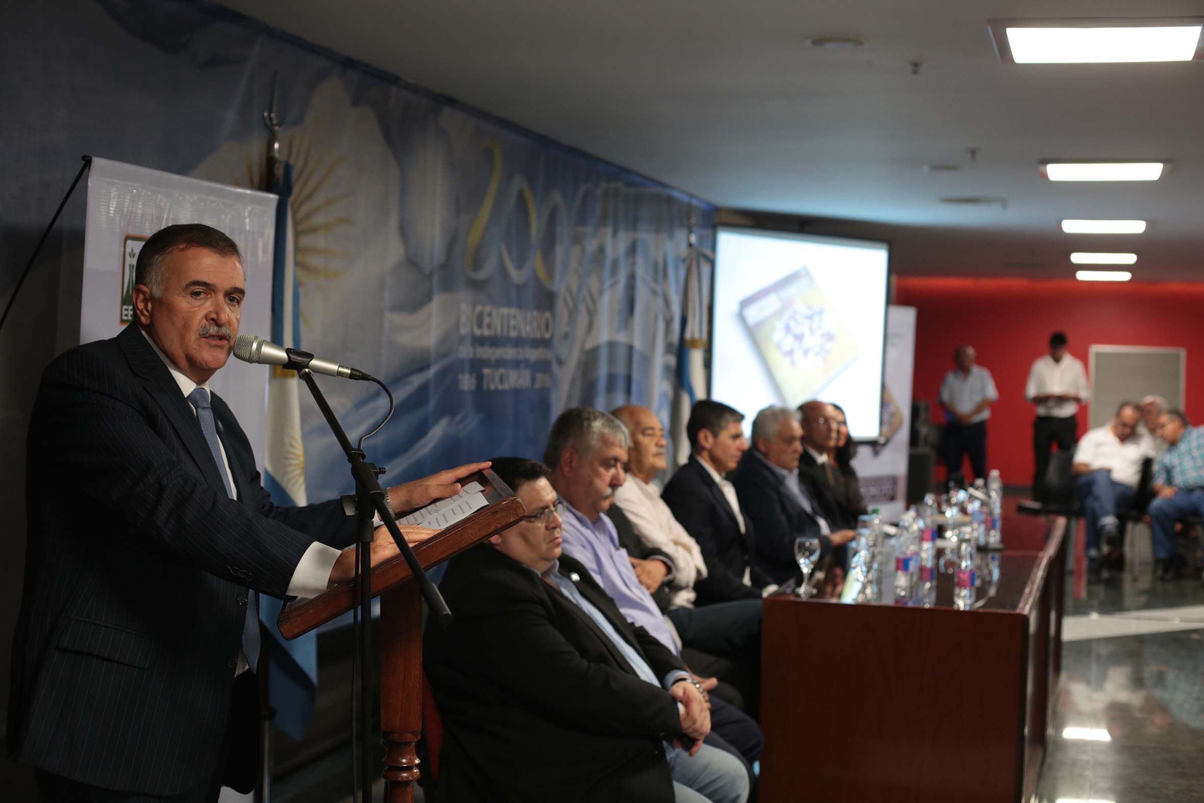 Encabezada por el vicegobernador de la provincia CPN Osvaldo Jaldo, la mesa de autoridades estuvo integrada además por el Ministro de Desarrollo Productivo Ing. Juan Luis Fernández, el presidente subrogante de la Legislatura, Don Julio Silman, el presidente del Honorable Directorio y el Director Técnico de la EEAOC, Juan José Budeguer y Dr. Daniel Ploper respectivamente, y los coeditores del libro, ingenieros Clara Espeche y Oscar Vizgarra, responsable este último del proyecto Legumbres Secas de la Estación Experimental.